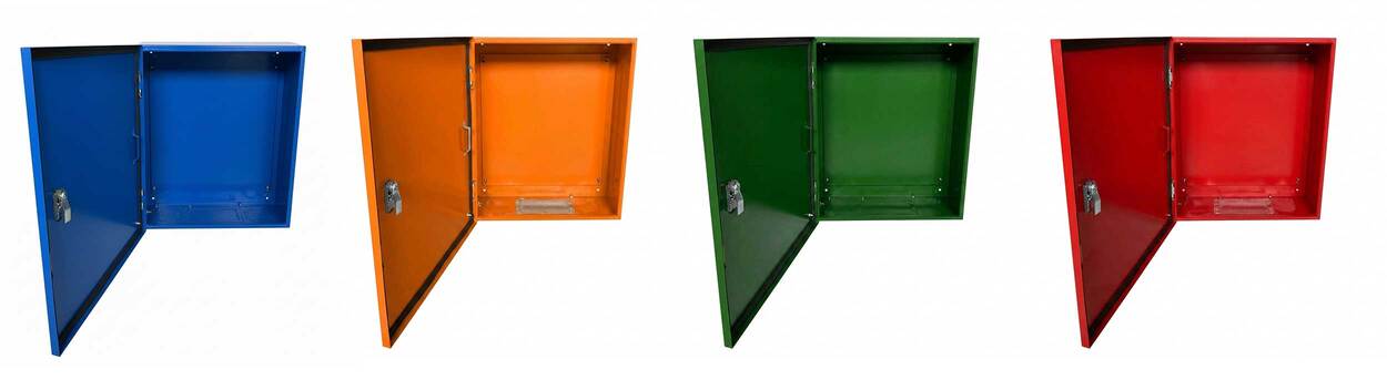 | एक दर्शनीय स्थल प्रबंधन कंपनी | आरएएल 6005 (काई हरा) | वितरण बॉक्स को ग्रीन बेल्ट के साथ एकीकृत किया गया है |